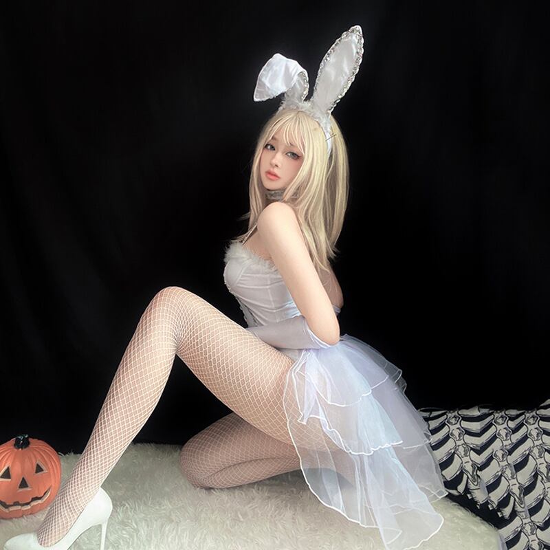 【視線独占バニー】セクシー復活・バニーガールコスチューム|ボディライン強調×透けチュールスカート|ナイトイベント&ハロウィンに|大人の余裕で誘惑♡
