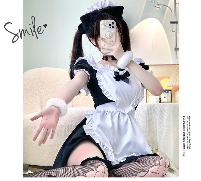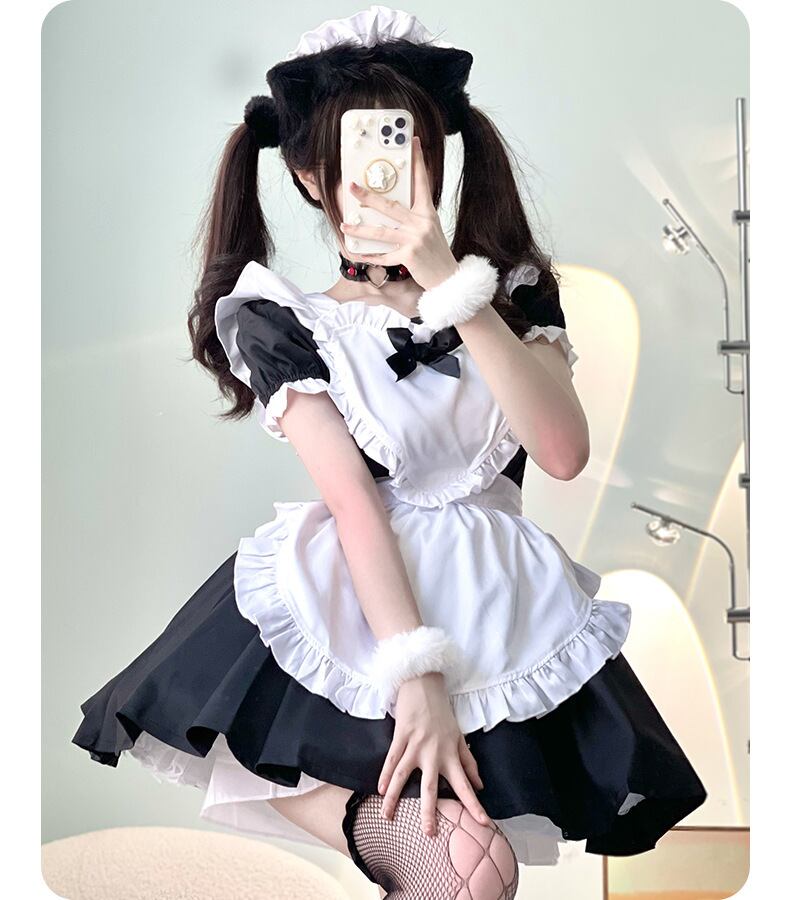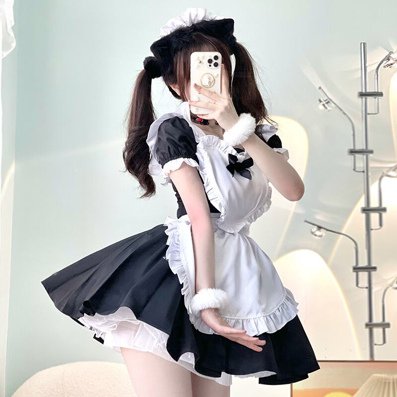 フリルやリボンをバランスよくあしらい、見た瞬間にときめく可愛さを大切にした王道メイドデザイン。派手すぎないやさしい雰囲気で、ガーリーさと清楚感を両立しています。写真や動画でも可愛さが伝わりやすく、初めてのコスプレにも取り入れやすい一着です。