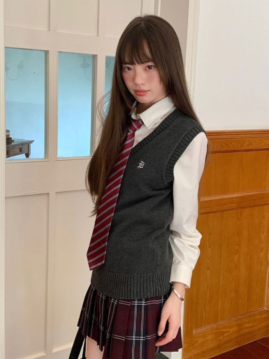 ふんわり甘い学院スタイルが叶う、刺繍入りVネックニットベスト。どのカラーも制服コーデにぴったりで、写真映え・動画映えも抜群。単品ベストは普段使いにも合わせやすく、2点セットはそのまま即コーデ完成。TikTok・Instagramの投稿やデイリーコーデまで幅広く使える万能アイテムです。春秋にちょうどいい軽やかな素材感で、着るだけで“清楚で可愛い女の子”の雰囲気に。