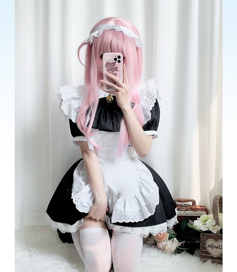 《♥おとぎメイド学院★ロリィタ制服♣》 甘ふわ黒×白メイドコスプレ 王道ロリィタ メイドワンピース 4点セット 撮影・イベント向け