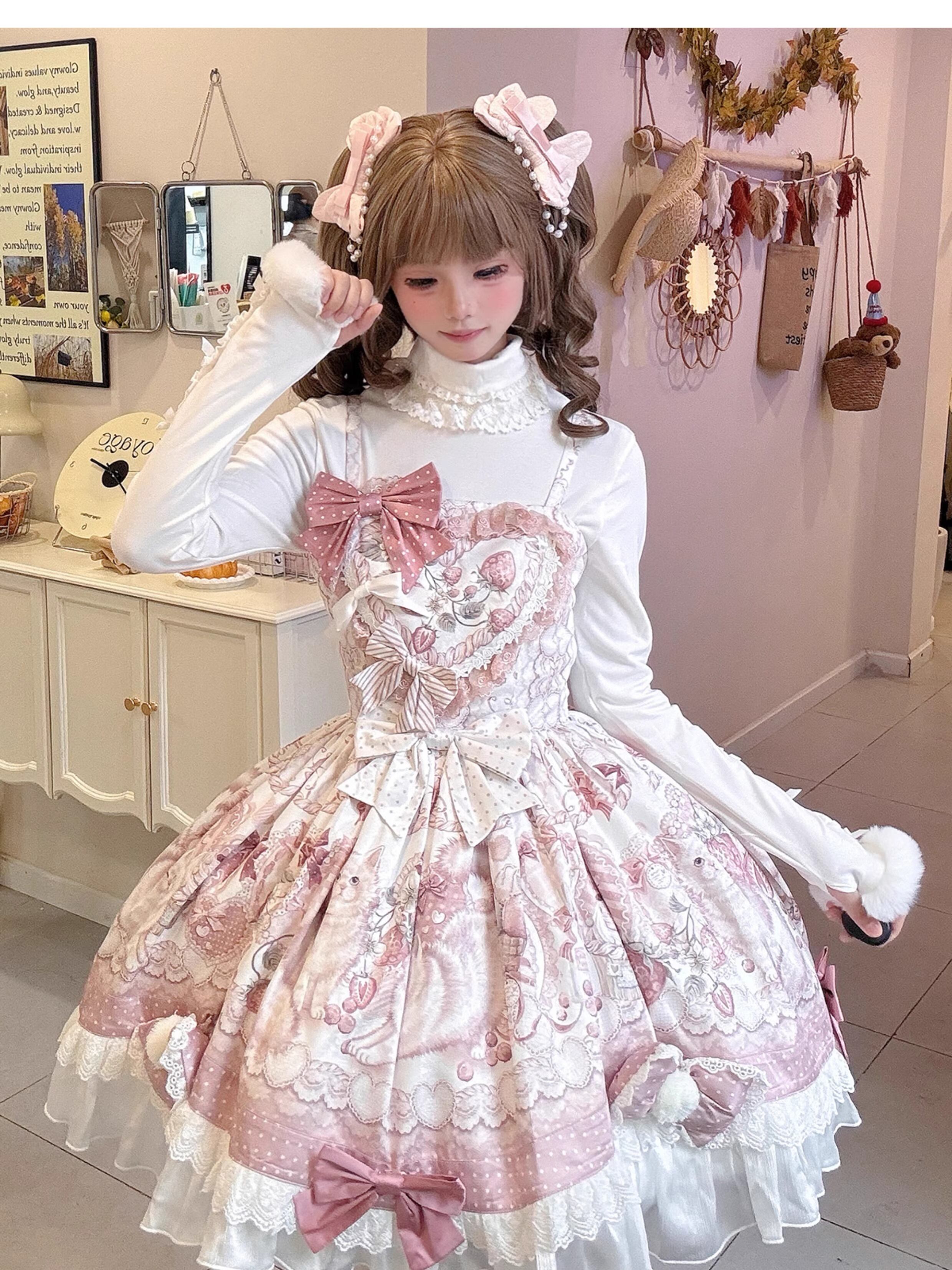 インナーを選ばないジャンパースカート仕様。ブラウスと合わせれば正統派ロリィタに、シンプルなトップスでややカジュアル寄りにも調整可能。甘ロリ初心者の方でもコーデを組みやすい構成です。