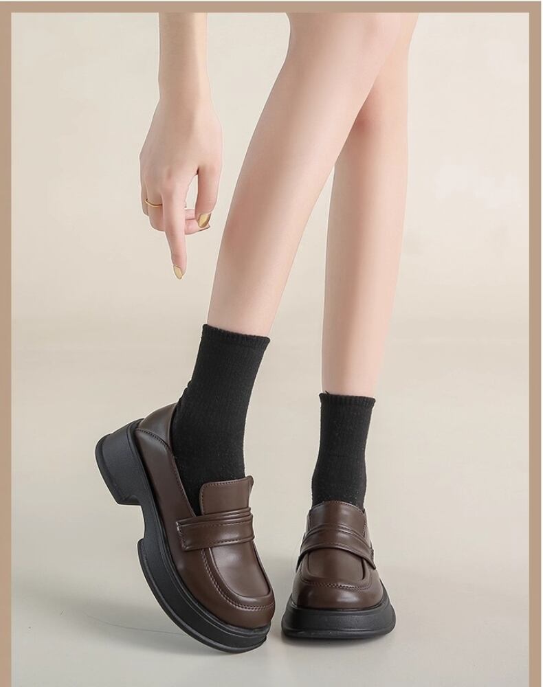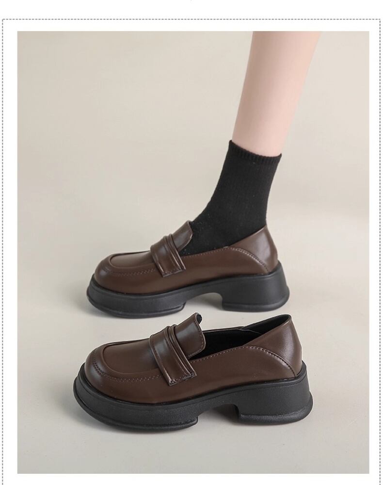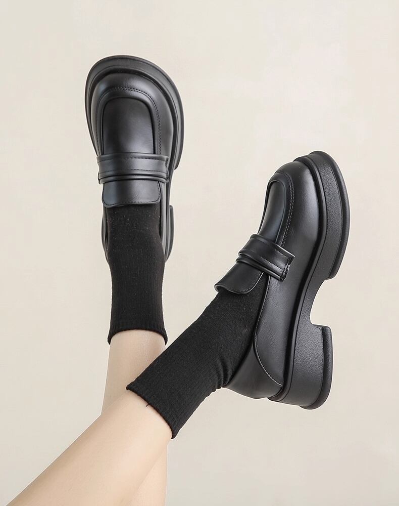 厚底クラシカルローファー ロリィタ対応 JKユニフォームシューズ 制服風・コスプレ兼用 英国調デザイン 丸トゥ スリッポンタイプ