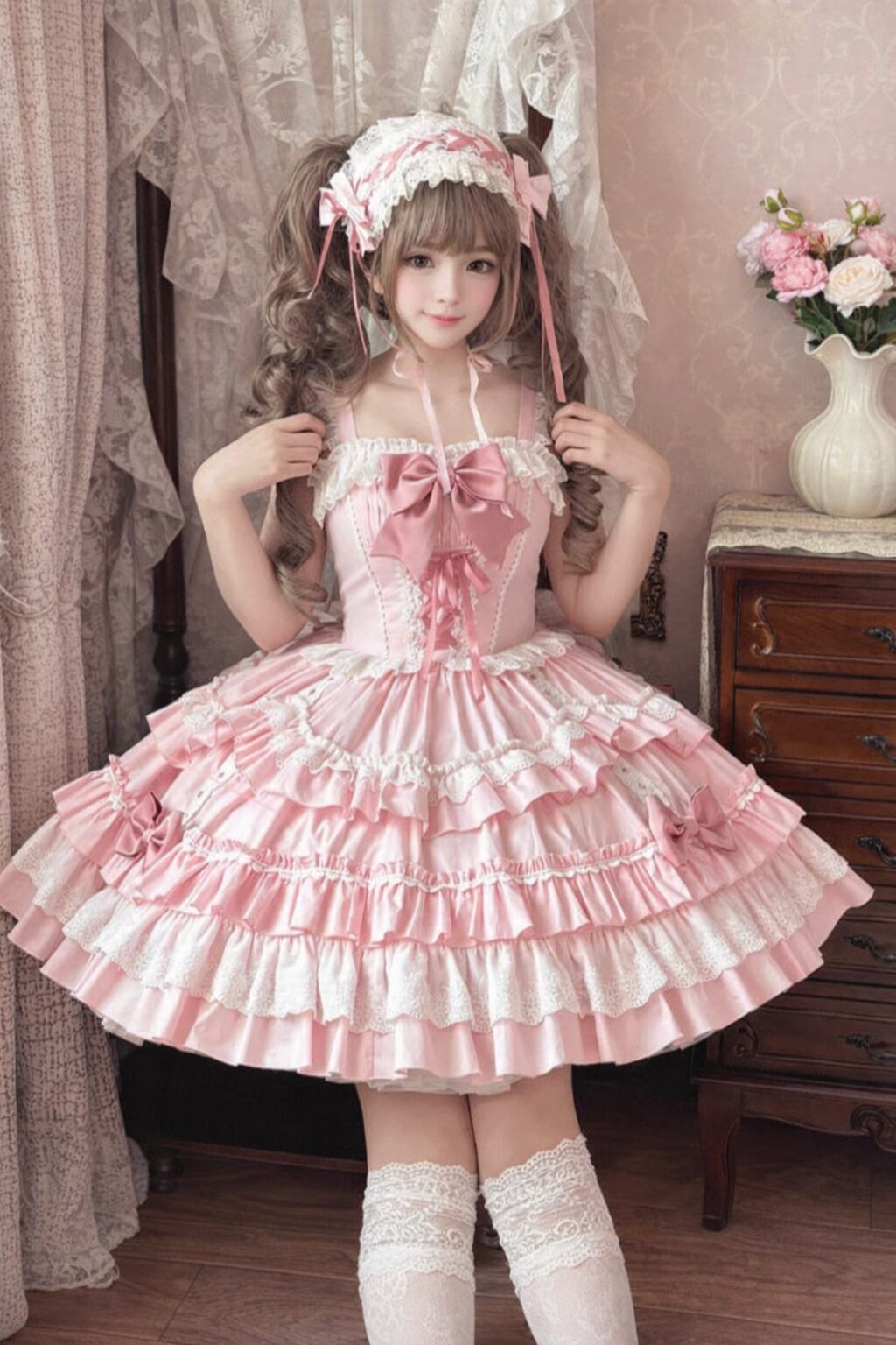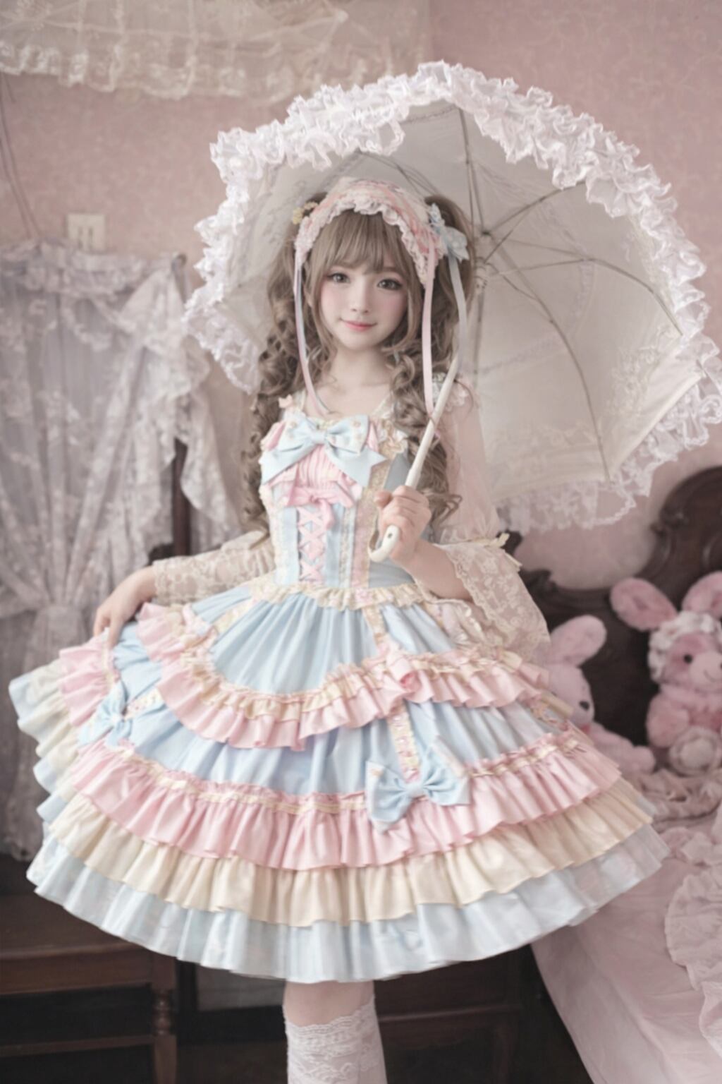 甘さはしっかりありつつ、やさしい色合いで挑戦しやすい一着。ロリィタ初心者さんでも取り入れやすく、自然に“かわいい”を楽しめます。
